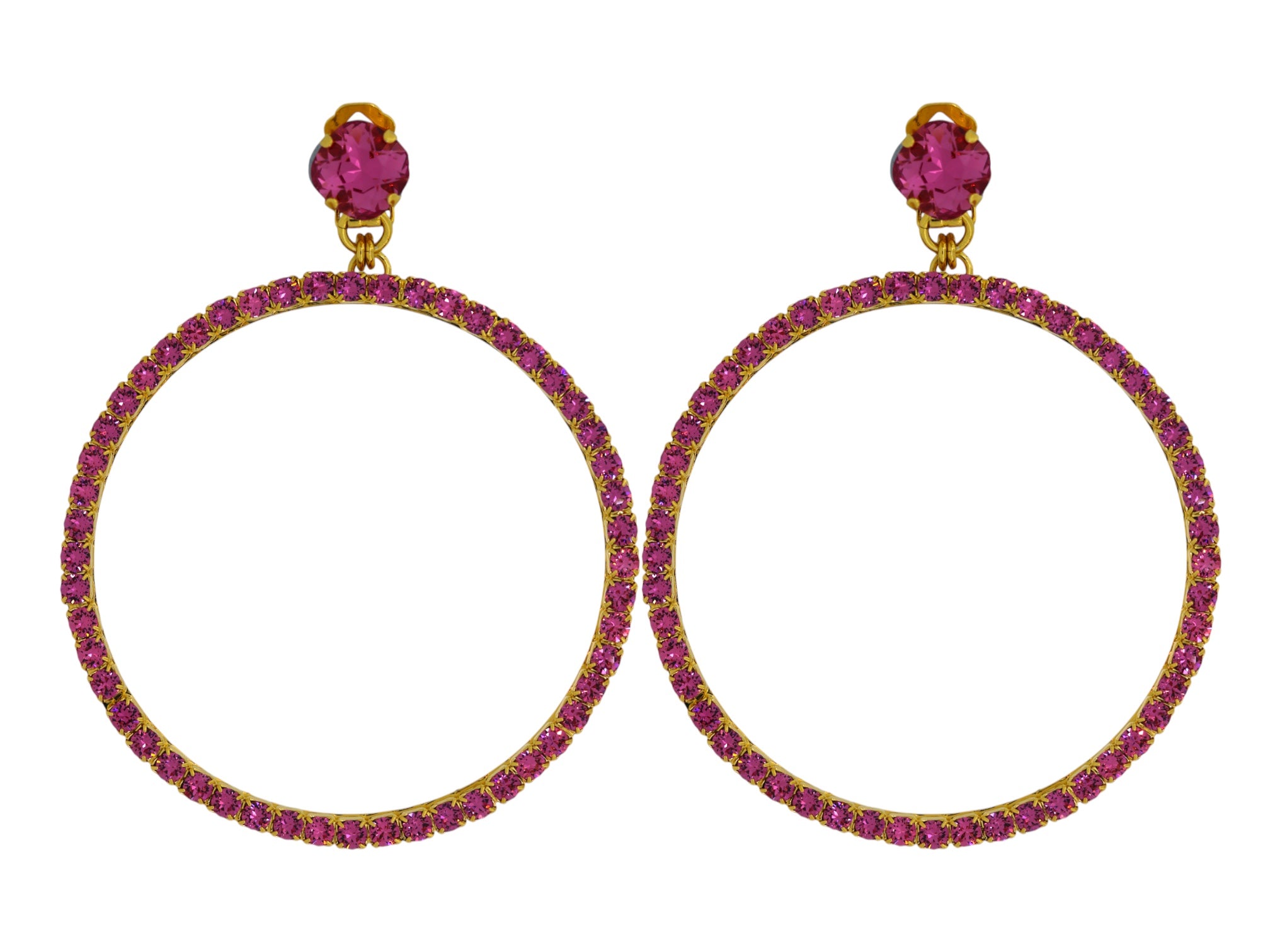 Set with 52 premium Austrian crystals in luxurious 23k Gold plating, these hoops are handcrafted in our Kensington workshop. Ideal for those moments that require a little extra drama, these earrings are sure to be noticed. Despite their size, these earrings are lightweight and comfortable for extended wear.